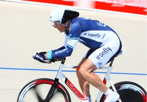 Kate Veronneau posted the fastest individual pursuit time to win the women's 30-34 gold medal. (Photo by Anthony Skorochod, www.cyclingcaptured.com)Among the men contesting the three-kilometer races, Chris Carlson (Plano, TX/Matrix Cycling Club/RBM) posted a time of 3:38.409, which was the fastest, to earn him the gold medal among men 45-49. Ian Robertson (Lincoln, NE/Flatwater Cycling) bested the men 30-34 field with a time of 3:46.187 while Thomas Wood (Los Angeles, CA/Ritte Van Vlaanderen/Ritte Racing) topped the men 35-39 podium with a time of 3:39.303. Michael Miller (Morgantown, PA/Chester County Cycling Foundation/Team Alliance Environmental) earned the Stars-and-Stripes jersey among men 40-44 after registering a time of 3:44.273.