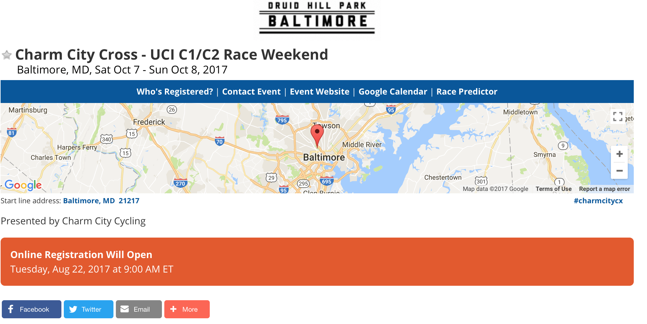 Charm City Cross Permit Number: 2017-2693 10/07/2017 - 10/08/2017 Baltimore, MD Event Flyer Event Website