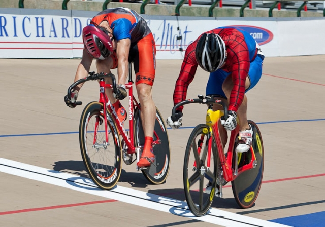 Interspersed between rounds of the sprint tourney, five points race national titles were also decided on Saturday. The men’s 30-34 division crowned Mike Zagorski (Honolulu, HI/BME Racing) in a small race of only five competitors. Jason Meidhof (Bethesda, MD/DC Velo Limited-Clean Currents p/b Don Beyer Volvo) out-raced silver-medalist Kevin Kremke (Houston, TX/Bike Barn) to add another jersey to hang with his time trial Stars-and-Stripes in the 35-39 category.